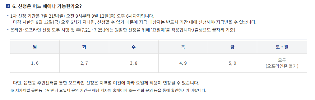 | 1차 지급 | 2025년 7월 21일(월) ~ 9월 12일(금) |